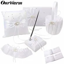.Pictures of OurWarm Wedding Satin Heart Cushion Ring Pillow Guest Book Signature Flower Basket Pen Holder Communion Wedding Party Decoration