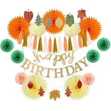 Offer Description for Pack of 19pcs birthday party decorations for kids adult with happy birthday banner autumn leaves thanksgiving decorations