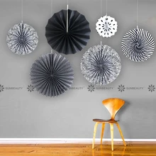 Offer Description of Black And White Party Decor 6pcs/set Paper Fan Rosettes Backdrop For adult Birthday Party Graduation Party Decorations Supplies