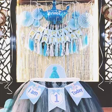 Offer Description of I am 1 Today 1st Banner Paper Birthday Bunting One Year Old Baby Boys Girls Kids First Birthday Party Decoration Happy Birthday